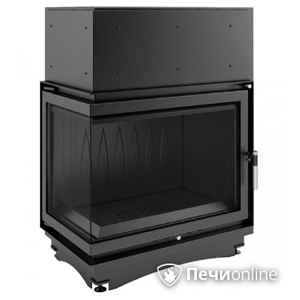 В распашную угловую дверцу слева вставлено Г-образное стекло из жаропрочной стеклокерамики Robax®, которое увеличивает обзор на игру пламени из-за отсутствия чугунной стойки. Каминная топка предназначена для установки в колонну, во внешний выступ перегородки или на специальный подиум.