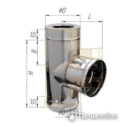 В интернет-магазине «Печи-Онлайн» вы можете купить товар «Дымоход Феррум Тройник утепленный нержавеющий 0.5/зеркальный 90гр. d-115/200 по воде в Магнитогорске» в Магнитогорске по выгодной цене - 4 300₽